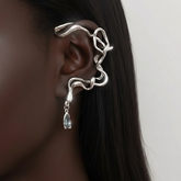 The Serpent Flow Ear Hook reinterprets the snake — a symbol of power, renewal, and temptation — through a liquid metal silhouette that glides along the ear with effortless precision.